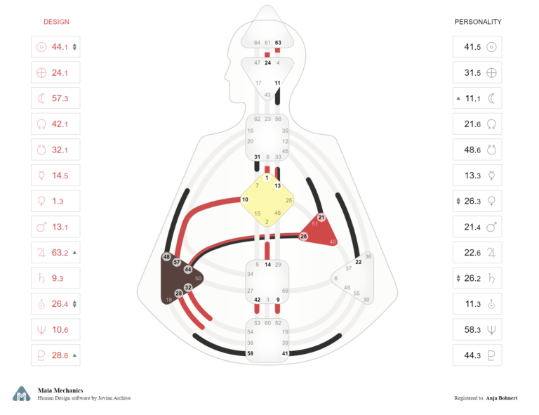 In einem Reading, das wir live bei Dir in München oder via Video-Call abhalten, tauchen wir anhand Deiner Geburtsdaten gemeinsam in Dein individuelles Design ein. Denn in der Tiefe gleicht kaum ein Mensch dem anderen. Ich erkläre Dir, wie die seltsame Grafik – genannt Chart oder Bodygraph – zustande kommt und was dahinter steckt. Wir erforschen, wo Du schon voll und ganz Dir selbst entsprichst und wo Du vielleicht von Deiner Umwelt konditioniert wurdest, etwas anderes zu sein. Wir gleiten anhand einer strukturierten Vorgehensweise durch die verschiedenen Punkte Deines Designs und nehmen uns dabei die Zeit, Deinen Fragen nachzugehen und spontanen Impulsen zu folgen. Wir widmen uns, kurz gesagt, voll und ganz, Dir und Deiner Einzigartigkeit.